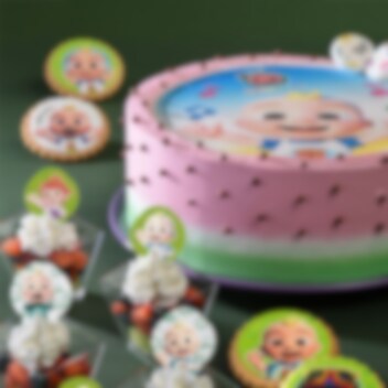 Baka en egen Cocomelon tårta till barnkalaset med denna tårtbilden på toppen. Bilden som är 20 cm i diameter är enkel att använda.