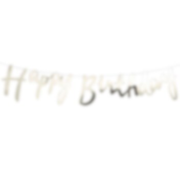 Jättefin guldfolierad girlang med texten Happy Birthday. Häng upp den på väggen till födelsedagskalaset. Girlangen är av papp och är ca 150 cm lång.