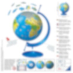 3D pussel av en jordglob med 108 bitar som har en diameter om 20 cm. Till detta pussel behövs inget lim utan det är bara att bygga.