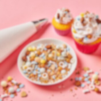 Skapa bakverk fyllda med kärlek med denna charmiga strösselmix! En lekfull kombination av ljusblå, bruna och gyllene dekorationer, inklusive små hundben och hjärtan, gör den perfekt för djurälskare och temakalas. Passar utmärkt för cupcakes, tårtor och andra godsaker.