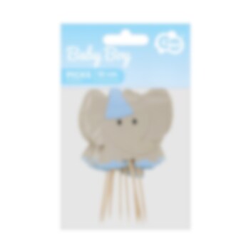 10 st. härliga cake toppers att placera på dina bakverk. Elefanterna är söta att ha till både babyshower och 1-årskalas. Elefanterna är tillverkade av papp och sitter på en pinne av trä. Höjd ca 10 cm.