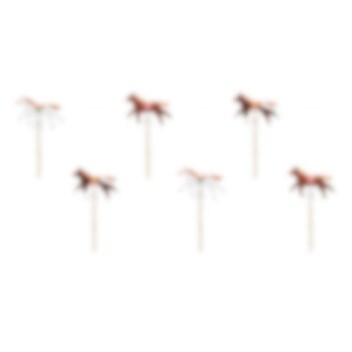 Om du vill dekorera tårtan eller andra goda bakverk till ditt kalas med hästtema så är dessa cake toppers ett mycket bra val. I detta set får du sex olika, alla med söta häst-motiv och som varierar i storlek mellan 7 till 9 cm.