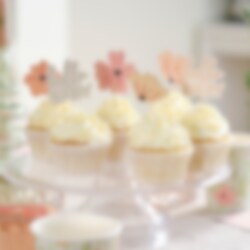 12 st. cupcake dekorationer som ger dina bakverk än somrig känsla. Varje förpackning innehåller 4 st dekorationer med texten "Hello Baby" och 8 st. dekorationer med olika söta blommor.