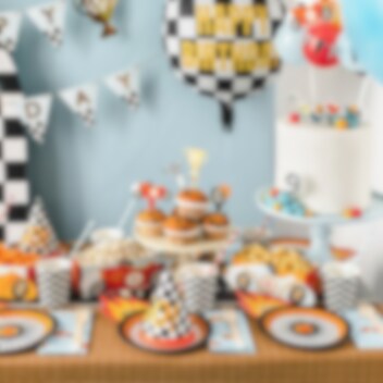 Om du vill dekorera tårtan eller andra goda bakverk till en fest eller ett barnkalas med racerbil-tema så är dessa cake toppers ett mycket bra val. I detta set får du 4 olika, alla med coola racing-motiv och som varierar i storlek mellan 6 till 10,5 cm.