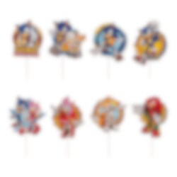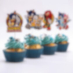 16 st. coola cake toppers med motiv av Sonic the Hedgehog. Perfekta att dekorera muffins eller tårtan med inför kalaset. Storleken varierar mellan 8 och 10 cm i höjd.