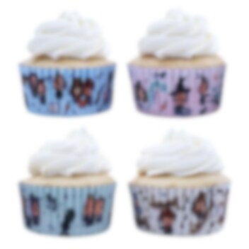 60 st. fantastiska muffinsformar i fyra olika modeller där du får 15 st. av varje modell. Alla har vackra motiv från Harry Potters värld och är perfekta till till ett kalas med Harry Potter-tema.
