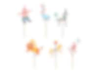 Gör dina bakverk ännu festligare med dessa färgglada cirkus caketoppers! Setet innehåller sex dekorativa cake picks med charmiga motiv som en clown, en säl, en zebra, en gås, en lejon och en cirkushäst. Perfekta för cupcakes, tårtor eller fruktfat vid temakalas och födelsedagsfiranden. Figurerna har en höjd på 9–11,5 cm och är monterade på träpinnar för enkel placering i bakverken.