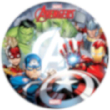 Cool och färgglad tårtbild av oblat med motiv av superhjältarna Hulken, Thor, Iron Man och Captain America från Avengers. Baka en egen personlig tårta till barnkalaset. Bilden som är 20 cm i diameter är enkel att använda. Tårtbilder av oblat är gluten- och laktosfria och har inget tillsatt socker. Passar för vegetarianer.