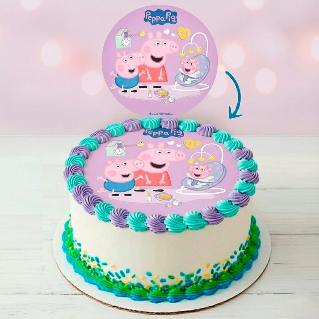 Placera enkelt tårtbilden direkt ovanpå tårtan och förvandla snabbt en vanlig tårta till en festlig kalastårta som garanterat uppskattas av alla små Greta Gris-fans. Tårtbilden är cirka 20 cm i diameter och passar perfekt på de flesta runda tårtor.