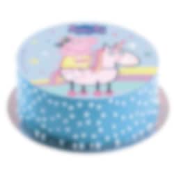 Vacker tårtbild av oblat med sött motiv av Greta Gris. Baka en egen personlig tårta till barnkalaset. Bilden som är 20 cm i diameter är enkel att använda. Tårtbilder av oblat är gluten- och laktosfria och har inget tillsatt socker. Passar för vegetarianer.