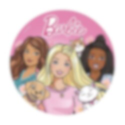 Tårtbild av oblat med vackra motiv från Barbie. Baka en egen tårta till barnkalaset med Barbie tema och placera din oblat på toppen. Bilden som är 20 cm i diameter är enkel att använda. Tårtbilder av oblat är gluten- och laktosfria och har inget tillsatt socker. Passar för vegetarianer.