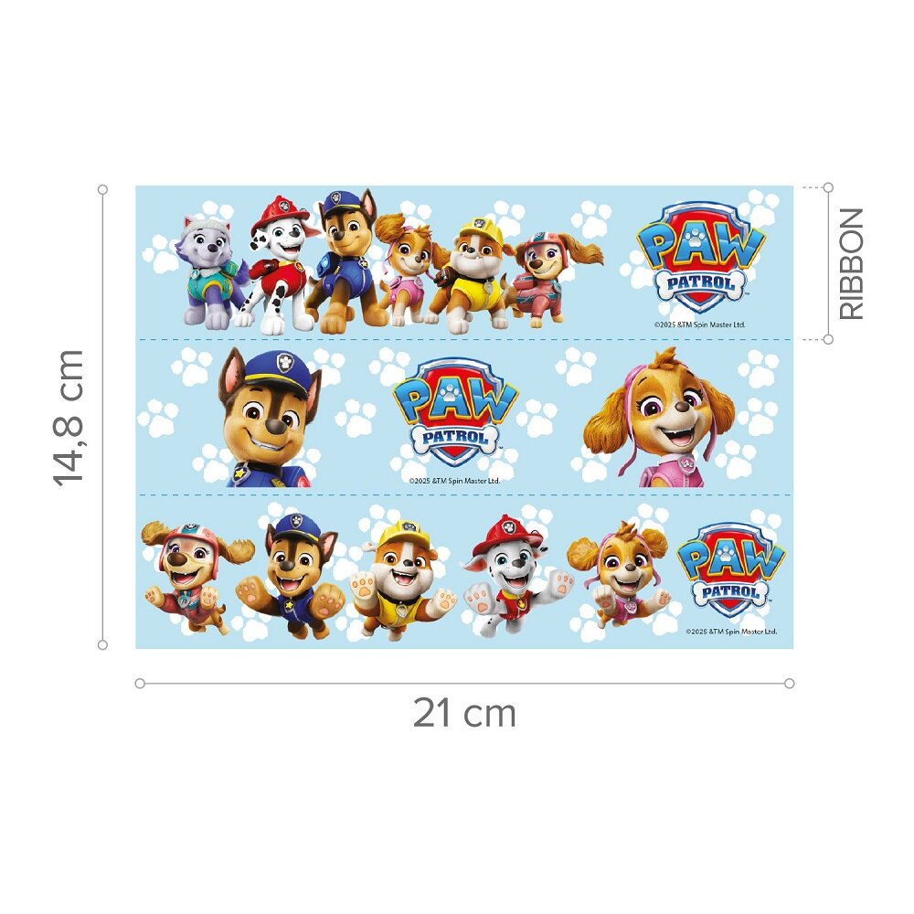 Dekorbanden pryds av flera av de välkända karaktärerna och gör det snabbt och enkelt att ge tårtan ett lekfullt och proffsigt utseende. Perfekt till ett Paw Patrol-kalas eller till alla barn som älskar de modiga valparna och deras spännande uppdrag.