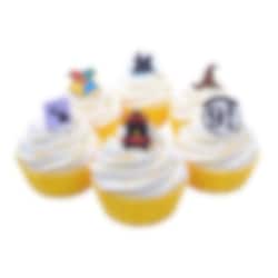6 st. handgjorda och unika sockerdekorationer med motiv från Harry Potter och Hogwarts som du kan dekorera både cupcakes och tårtor med. De passar perfekt till ett kalas med Harry Potter.