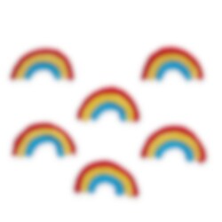 6 st. sockerdekorationer som föreställer regnbågar. Dekorera tårtan med dessa för att göra den extra fin och färgglad inför kalaset.