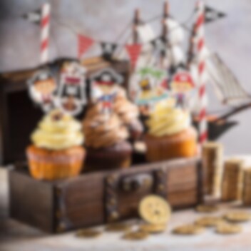 Ge kalaset en riktig piratkänsla med detta tårtdekorationskit! Med pirater, en skattkarta, en piratflagga och en girlang blir tårtan en del av ett spännande sjörövaräventyr. Girlangen är 20 cm hög, medan tårtdekorationerna är mellan 5,5 och 12 cm – perfekt för små sjörövare som älskar piratkalas!