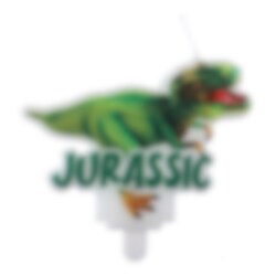 Tårtljus med motiv av en cool dinosaurie T-Rex och med texten Jurassic. Cool att ha på din tårta eller bakverk. Tårtljuset är 7,5 x 6 cm.