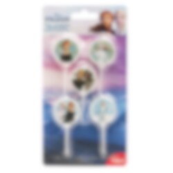 5 st. tårtljus med fina motiv av Anna, Elsa, Kristoffer, Sven och Olaf från filmen Frost - Frozen 2. Dekorera din tårta eller bakelser med dessa ljus för en vacker effekt inför varje kalas med Frost tema.