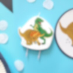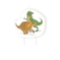 Tårtljus med motiv av en Tyrannosaurus Rex och en Triceratops. En snygg dekoration att ha med på tårtan när det vankas kalas med dinosaurietema. Tårtljuset är ca 10 cm högt.