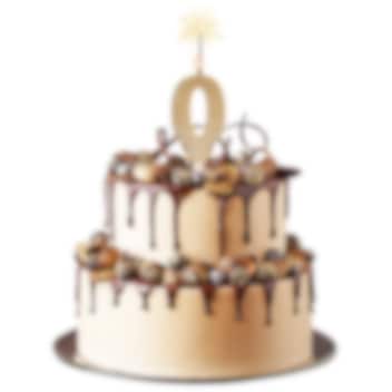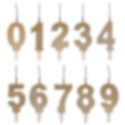 Lyxiga sifferljus i guld som gnistrar de fyra första centimeterna. Varje ljus är cirka 9 cm högt och finns i siffrorna 0 till 9.