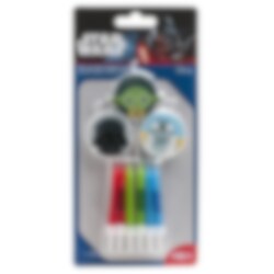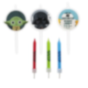 Lys upp ditt Star Wars-temakalas med dessa tårtljus! Förpackningen innehåller 15 ljus med motiv från den ikoniska filmserien. 3 av tårtljusen är runda med en diameter på 3,5 cm.