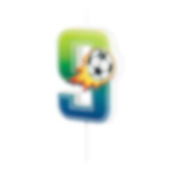 Nio år och redo att ta plats på planen. Med detta 10 cm höga tårtljus får födelsedagstårtan ett fotbollslyft och firandet blir en riktig vinnarfest. Ett perfekt val för alla som lever och andas fotboll och vill ha ett kalas i äkta matchanda.