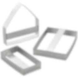 Ett set med 3 st. olika kakformar som skapar ett pepparkakshus som man sedan kan dekorera. Rolig sak att skapa tillsammans med familjen inför jul. Kakformarna är tillverkade i stål och har storlekarna 14 x 15,2 cm, 12,3 x 17,7 cm och 7,2 x 14 cm.