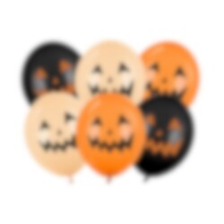 Ge festen en lekfull och kuslig touch med dessa latexballonger. Setet innehåller ballonger i orange, svart och beige med tryck av klassiska pumpaansikten, perfekt för att skapa en stämningsfull Halloweenmiljö. Kan fyllas med helium eller luft och passar både inomhus och utomhus.