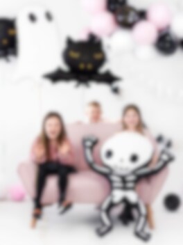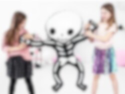 Folieballong som föreställer ett vitt och svart dansande skelett. En rolig dekoration att blåsa upp inför kalaset eller Halloweenfesten. Ballongen är ca 84 x 100 cm stor uppblåst och kan blåsas upp med luft eller helium.