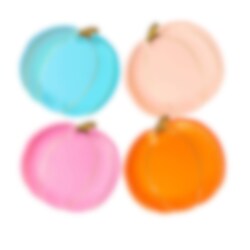 8 st. superfina papptallrikar med form och motiv av en pumpa med gulddetaljer. Tallrikarna är ca 22 cm i diameter och paketet innehåller fyra olika färger, 2 st. rosa, 2 st. peach, 2 st. orangea och 2 st. blåa.