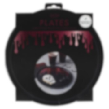 8 st. svarta tallrikar med röda folierade bloddroppar. Snygga att duka med på halloween festen. Tallrikarna är 25 cm i diameter och är gjorda av papp.