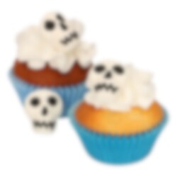 8 st. sockerdekorationer föreställande coola dödskallar. Dekorera dina bakverk med dessa när det är dags för Halloween.