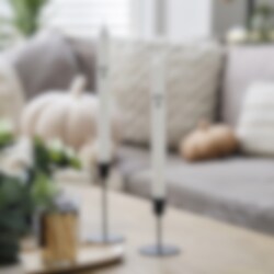 Vackra Halloween-kronljus dekorerade med spökansikten som mäter 24 cm i höjd och 2,2 cm i bredd. Perfekta för att lägga till en kuslig känsla i ditt hem. Förpackningen är innehåller två ljus.