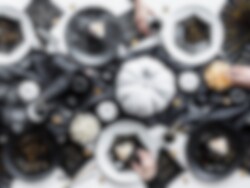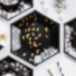 Dessa svarta papptallrikar är sexkantiga och pryds av glänsande guldfladdermöss som ger ett lyxigt och festligt uttryck. En perfekt detalj till halloween.