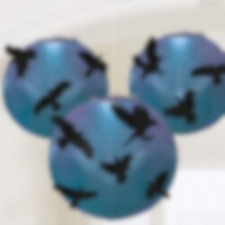 Förpackning med 3 st. lanternor i mörkblå färger och inslag av lila nyanser samt 18 st. små korpar tillverkade av papper som du kan fästa på lanternorna för att göra dom ännu kusligare. Perfekta dekorationer att hänga upp inför halloweenkalaset eller festen. En av lanternorna är 24,7 cm stor och de andra två är 19,6 cm stora.