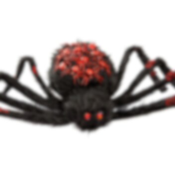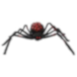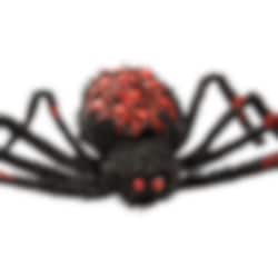Maxa Halloweenstämningen med denna stora, läskiga spindel! Den svarta kroppen är täckt med små röda spindlar och har långa, böjbara ben som gör den enkel att placera på golv, möbler eller hänga upp i taket. En garanterad skrämselfaktor på kalaset!