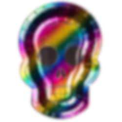 8 st. coola tallrikar formade som dödskallar i skimrande färger. Tallrikarna är tillverkade av papp och är 23 x 16 cm stora.