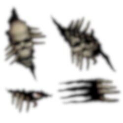 4 st. väggklistermärken med läskiga skelettmotiv som ger en illusion av att de försöker ta sig ut ur väggen. Perfekta för att skapa en skrämmande atmosfär till Halloween!