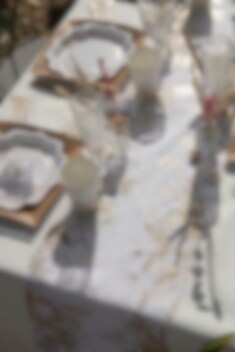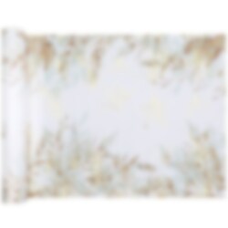 Vacker bordslöpare med sofistikerade motiv av neutrala bladverk och guldfolierade detaljer i relief. Duka bordet vackert med denna inför en finare tillställning eller fest.