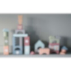 Förpackning med 49 st. färgglada träklossar med olika former som du kan bygga hur du vill med hjälp av din fantasi. Den perfekta presenten till barnet som gillar att bygga. Förpackningen inkluderar även en tygpåse som du kan förvara klossarna i efter varje lek.