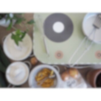 Kökset med 5 st. olika köksredskap samt 2 st. grytor, 1 st. stekjärn,1 st. durkslag och 1 st. grytvante. Allt snyggt förpackat i en väska i papp. Väskan kan vändas och användas som spishäll då där finns 2 st. kokplattor.