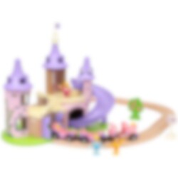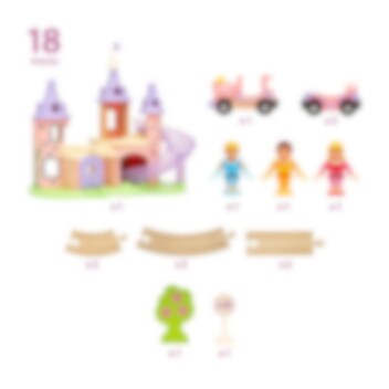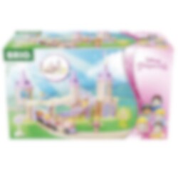 Brio Disney Princess Slott Set är ett charmigt lekset som har ett fantastiskt prinsesslott, tågbanor av trä, prinsesståg med vagnar, tre Disneyprinsessfigurer och tillbehör.