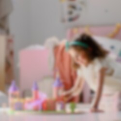 Prinsessorna Askungen, Belle och Törnrosa/Aurora är festligt uppklädda i sina vackra klänningar som skimrar och glittrar. I det högsta tornet får de en en magisk utsikt över sagovärlden och kan sedan åk ner på den skimrande rutschkanan för att återvända till nya äventyr.