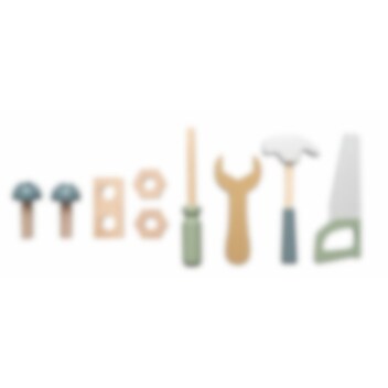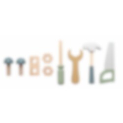 Coolt verktygsbälte med tillhörande verktyg i trä som du kan använda för att hjälpa till hemma när det är dags för att spikas och bankas. En häftig liten present till barnet som ska döpas. Setet inkluderar: