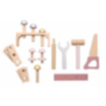 Rosa verktygslåda med tillhörande verktyg i trä som passar perfekt som present till barnet som älskar att bygga och snickra. Denna leksak innebär stimulerande och kreativ lek samtidigt som barnen lär sig färg och form. Verktygslådan är ca 23 x 12 x 16 cm stor.