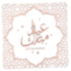 20 st. servetter i vit färg med motiv av texten "Eid Mubarak" i roséguldfolie. Servetterna är ca 16,5 x 16,5 cm stora outvikta.