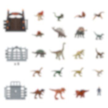 Denna kalender är en dröm för alla Jurassic Park-entusiaster. Den innehåller över 30 olika leksaksdelar, inklusive 19 små dinosaurier från filmen, en minifigur av en människa och 10 delar till grindar och plattformar, inklusive de berömda portarna till Jurassic Park..