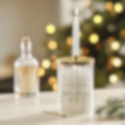 Snygg glasburk med guldfärgat lock som även fungerar som ljushållare till de 24 st. vita kronljusen med guldsiffror som medföljer. Skapa en mysig nedräkning varje dag till julafton med denna dekoration. Glasburken är 15 x 10 cm.