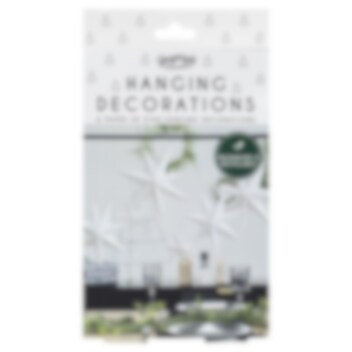Varje förpackning innehåller: 6 st. stjärndekorationer av papper i tre olika storlekar. 2 st. 30 cm, 2 st. 22 cm och 2 st. 15 cm.