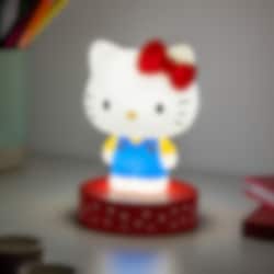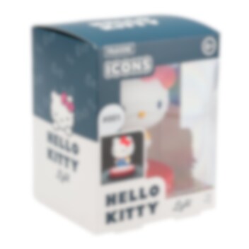 Sprid glädje och mysbelysning med denna charmiga Hello Kitty-lampa. Lampan är ca 11 cm hög och föreställer Hello Kitty i sin klassiska outfit med blå klänning och röd rosett. Hon står på en röd prickig bas och passar perfekt som nattlampa eller dekorativ detalj på skrivbordet eller hyllan.