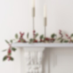 Förhöj julstämningen med vår eleganta blomstergirlang med järneksblad och röda bär. Denna girlang utstrålar en klassisk julatmosfär och blir en vacker detalj i ditt hem under högtiden. Den är perfekt att drapera över öppna spisen, längs trappan eller som en stämningsfull bordsdekoration. Kombinera girlangen med andra juldekorationer för att skapa en varm och inbjudande julmiljö. Längd 180 cm.